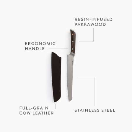 – ใบมีดขนาด 14 นิ้วนี้มีขอบหยักที่คมและช่วยตัดเบเกิล เค้ก และบาแก็ตได้อย่างง่ายดาย ต่างจากมีดหยักมาตรฐาน ใบมีดที่ยาวขึ้นนี้ตัดเบเกิลหนาๆ ได้อย่างแม่นยำ ไม่ว่าจะเป็นการอบหรือซื้อขนมปังสดมาหั่นเป็นชิ้นๆ ตามความหนาที่ต้องการ มีดตัดขนมปังนี้ยังใช้เป็นมีดอเนกประสงค์สำหรับหั่นเนื้อบางๆ ได้อีกด้วย